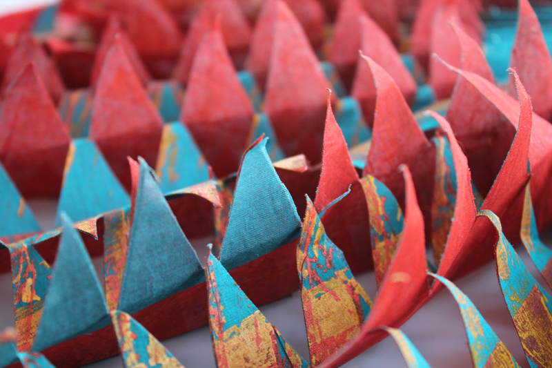 - I use a variety of weights of fabric and paper. I like to use medium weight cartridge paper, Khadi cotton rag paper as well as Abaca tissue and delicate Lokta papers. The difference between handmade papers and commercially produced paper emphasises the paper surface, texture and colour absorption. I enjoy working with dyes onto these papers as the clarity and intensity of the colour is so rewarding!