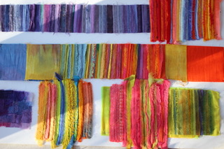 - The fabrics I select are comparatively limited, but I find these give me an excellent variety of colour quality as well as texture and surface. I select cotton organdie, silk organza, silk crepeline, silk chiffon, silk georgette that all give variations in translucency and transparency. I also select some heavier fabrics such as old linens, wild silk and silk noil, and then there is Viscose Satin, which is such a luscious fabric when dyed.. and on and on!